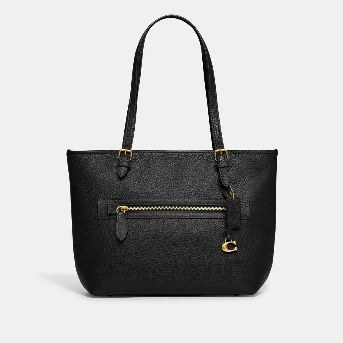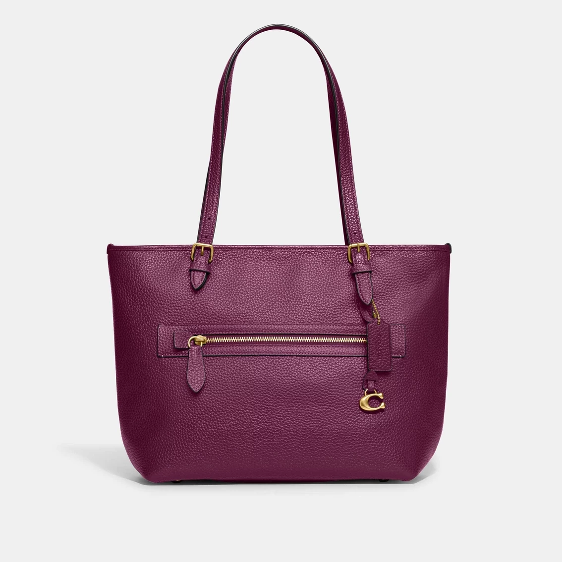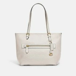 COACH’s latest Taylor tote goes anywhere and everywhere in style thanks to a lightly textured pebble leather construction with a flash of bright hardware. It offers uncomplicated organization that holds your every essential, from smartphone to tablet to wallet. The zip-top closure keeps your items secure while also allowing easy access when it counts. Style: CC395B4.