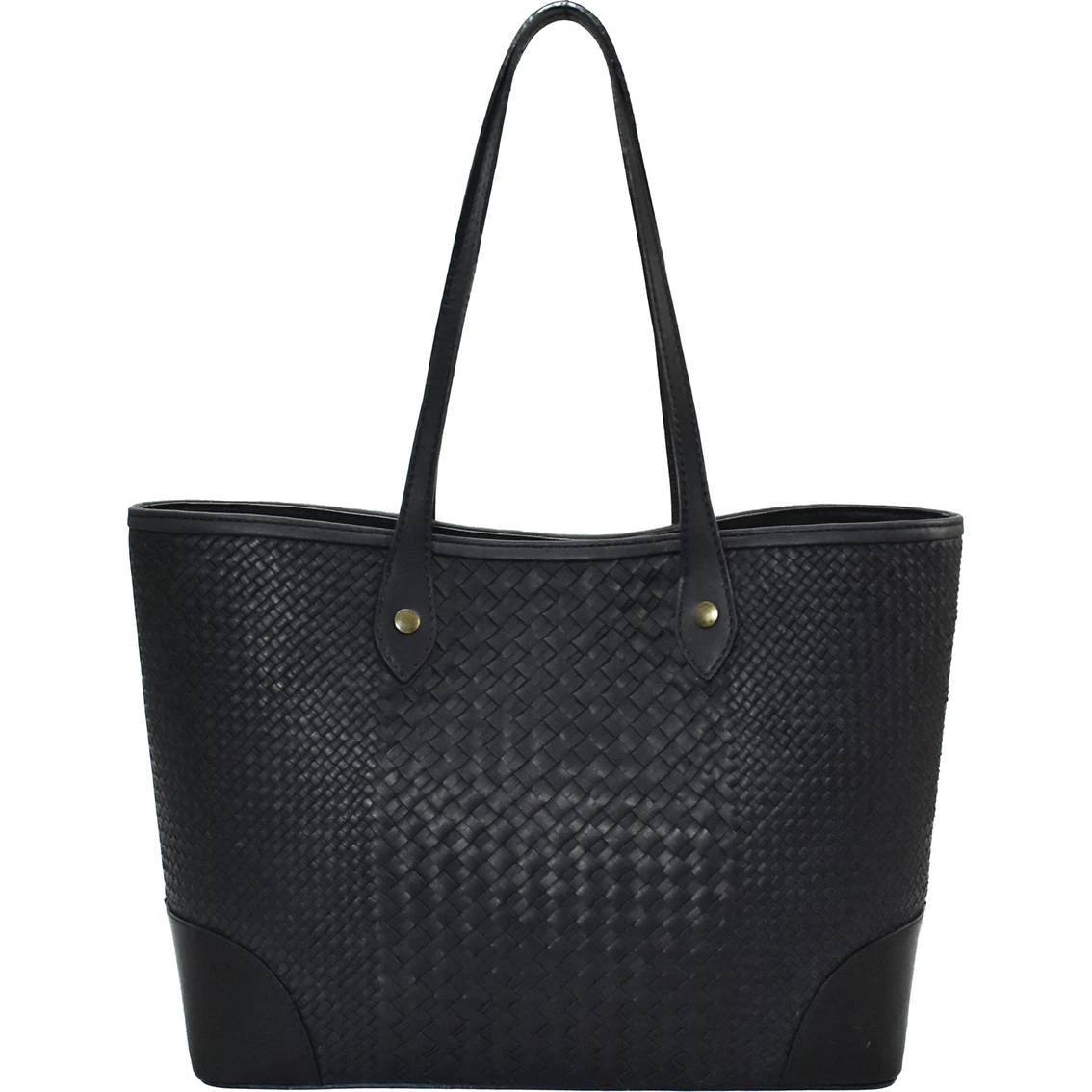 This Melissa Basket Woven shopper is made from beautiful antique pull up leather and vintage brass hardware. This shopper bag is the perfect size for a hectic day or weekend away. This shopper contains a magnetic snap closure, Interior front wall double organizational slip pocket, as well as back wall zip and slip pockets to keep your phone and small essentials secure and within easy reach. Style: 29DB1235-001.