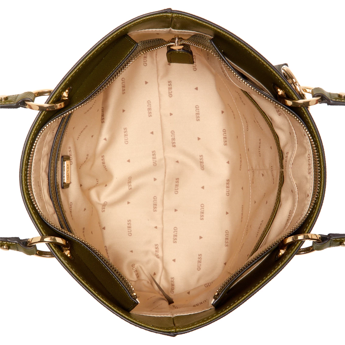 The Guess Noelle Tote is a full top zip closure with front outside slip in pocket. Features inside zip and slip in pockets. Style: ZG787922OLV.