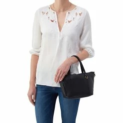 – Solid leather top handles and removable single strap