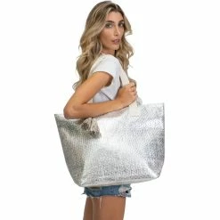 SKU: 3172116 Categories: Handbags, Totes & Shoppers Tags: Clothing & Accessories, MAGID, Magid Insulated Metallic Beach Tote with Flat Handles and Tassel DΓ©cor, Totes & Shoppers