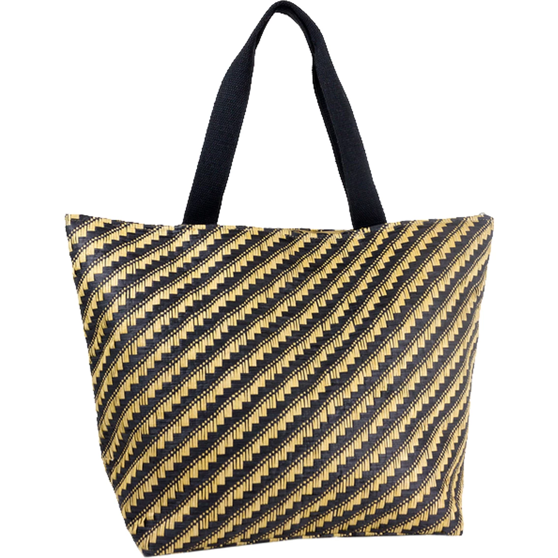 Breezy Magid straw tote features a fun texture in an abstract design. Roomy enough for toting all your essentials for a day out, whether it’s for a day at the lake or poolside. Folds flat for easy packing. Style: PV398S-BLACK-TOAST .