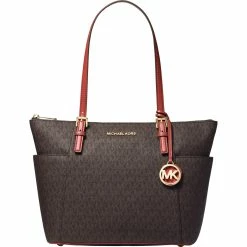 Michael Kors Jet Set East West Logo Tote. Contrast slip pockets define the classic-chic style of this upright and well-organized Michael Kors tote. Style: 30S0GTTT1B252.
