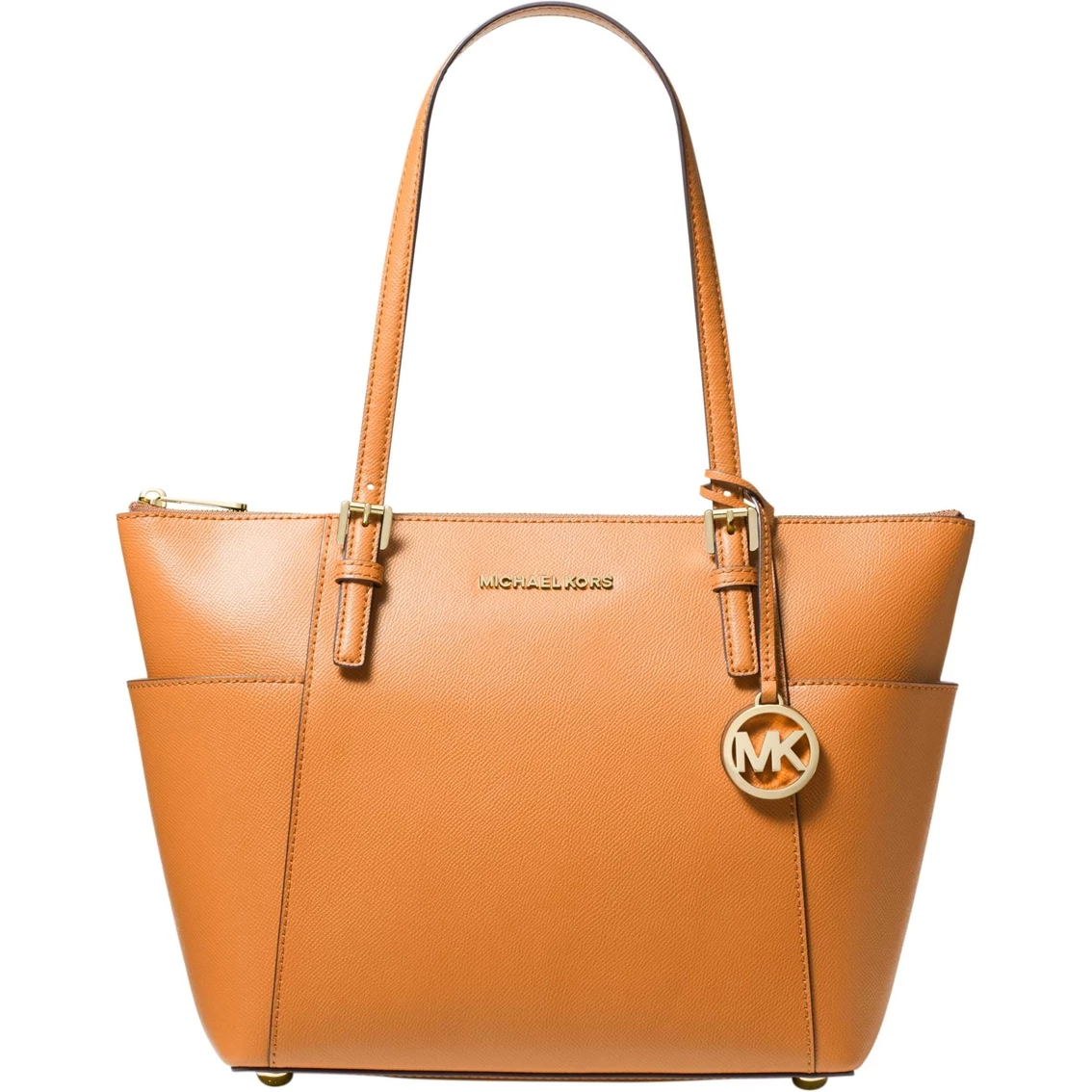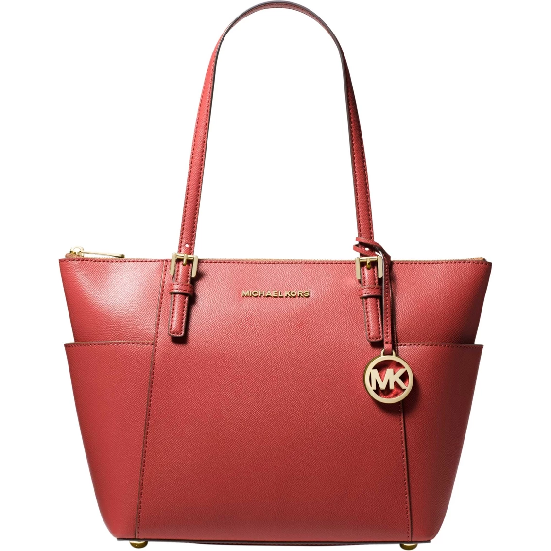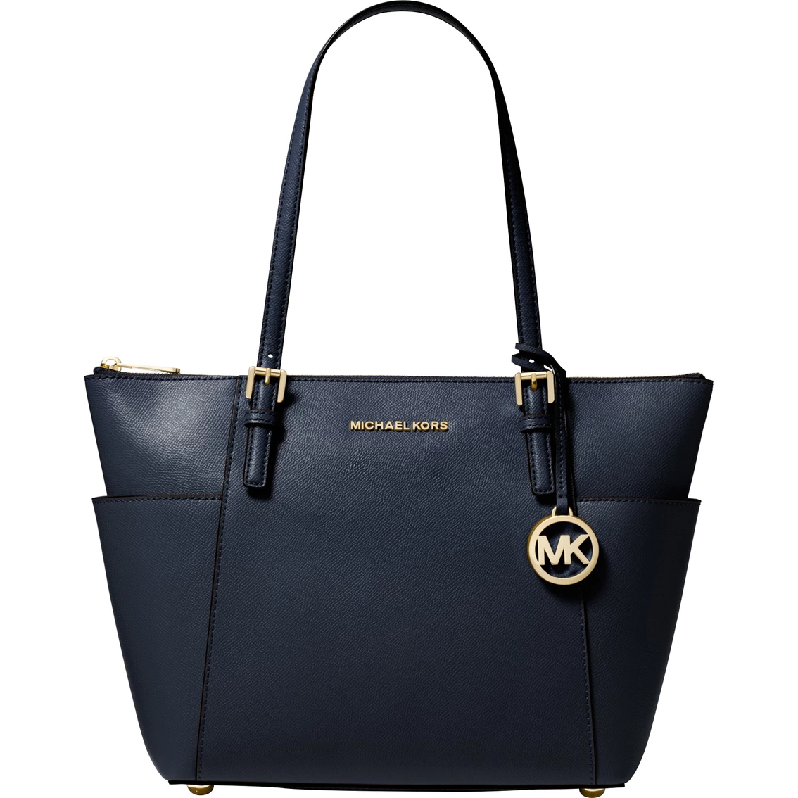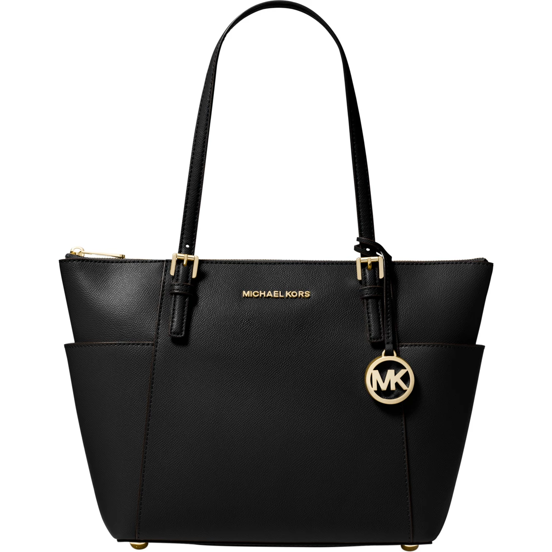 Be classic and chic with this Michael Kors tote. The tote features a hanging logo charm and exterior side slip pockets. Includes buckle-adjustable shoulder straps and lined interior with multi-function slip pockets and zip pocket. Style: 30F2GTTT8L001.