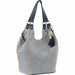 The Sakroots Roma Shopper updated with a totally unique look! It features antique silver tone hardware, an interior back wall zipper pocket and two front wall multi-functional pockets, a back zipper pocket, and a critter keychain. Perfect for a day around town, a trip to the beach, or simply just a fresh pop of newness to add to your look! Style: 108954NVYSD.
