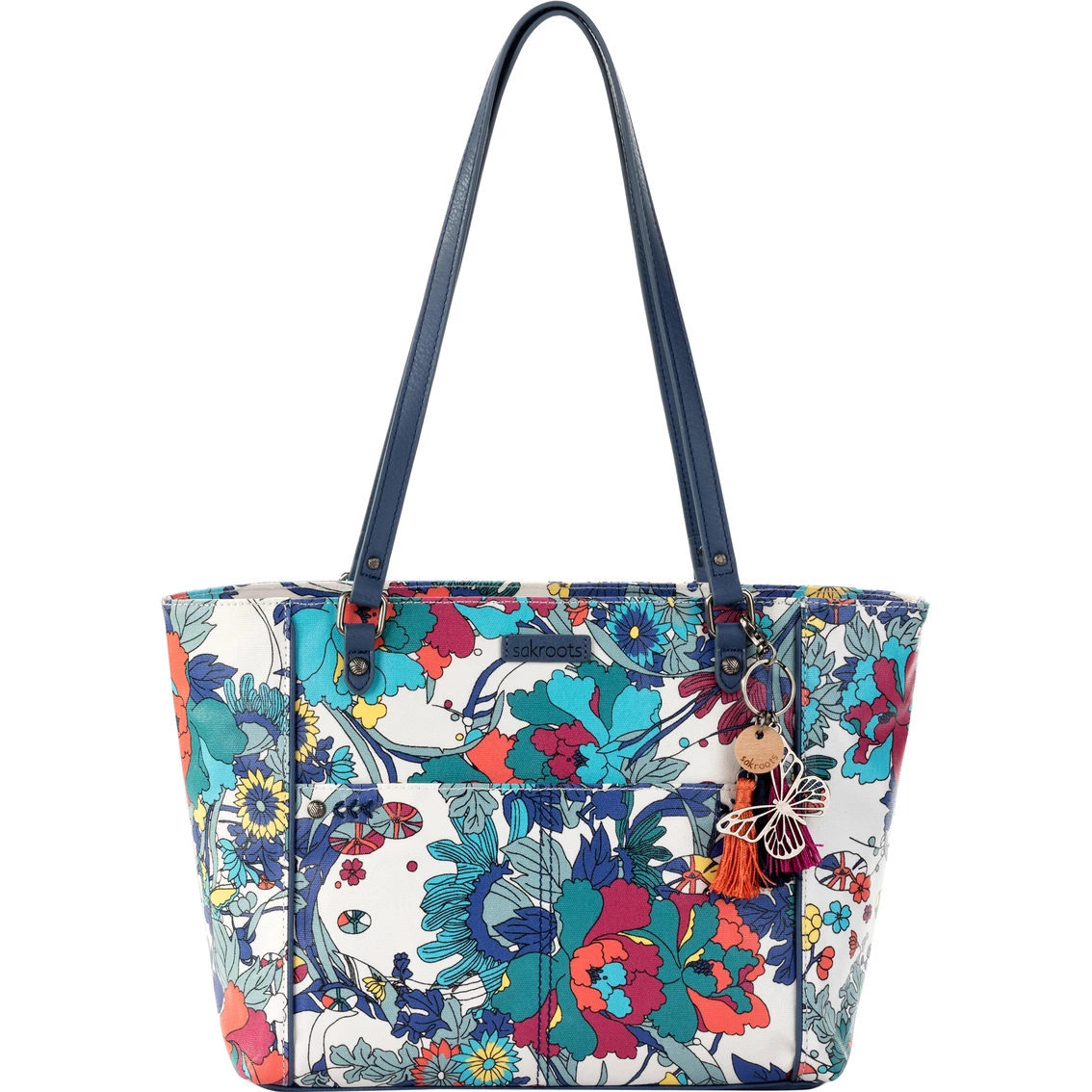 This exclusive artist print pops in bright, joyful colors on the Metro Tote. It’s designed in durable, stain and water-repellant Eco-Twill material, made from 4 plastic recycled bottles. Double straps make it comfy to tote around.