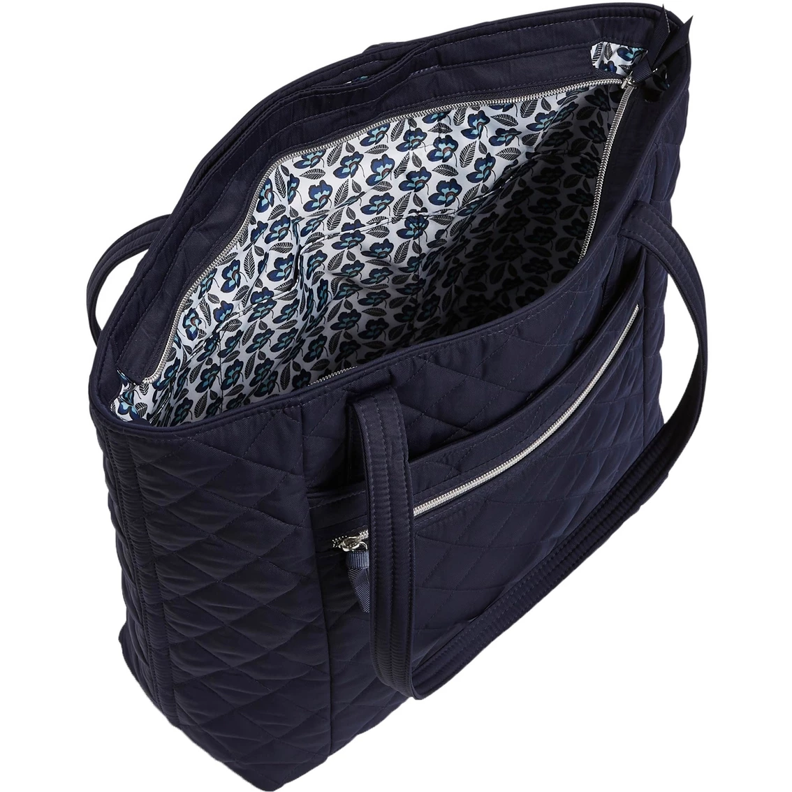 Vera Bradley Vera Tote, Performance Twill. The flagship tote is large enough to hold the extras for a weekend trip, snacks for a soccer game or the necessities for your commute to the office. The exterior pockets are perfect for your phone and keys and the interior pockets keep everything else neatly organized. The zip closure keeps everything secure. Made from quilted, sleek, water-repellent polyester. Exterior features a slip pocket, a zip pocket and a hidden top pocket. Interior features six slip pockets. Zip closure. Model: 27232219.