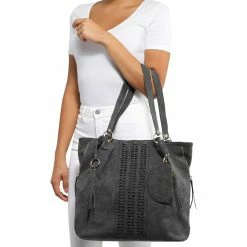 Say hello to your new go-to bag. The Krista Woven Tote from Violet Ray has three compartments to store all of your essentials. It’s fashionable and functional, complete with a hangoff pouch and braided design. Carry on your shoulder with the dual handles so you can stay hands-free. Faux suede finish that is versatile enough to complement any outfit. Main zipper closure keep your items securely inside. Model: UWV4024AFBK.
